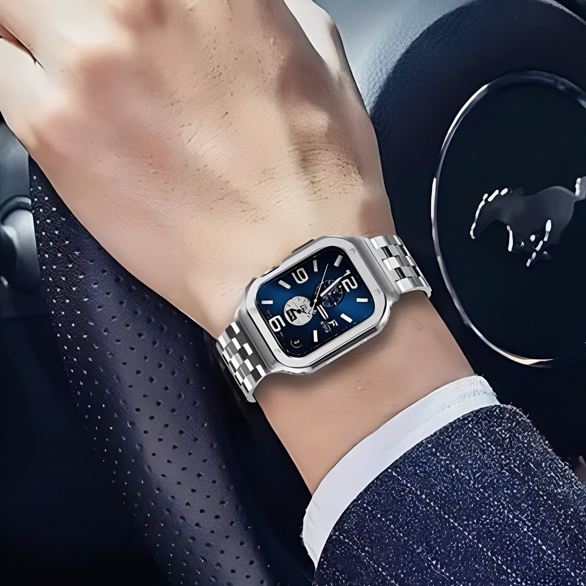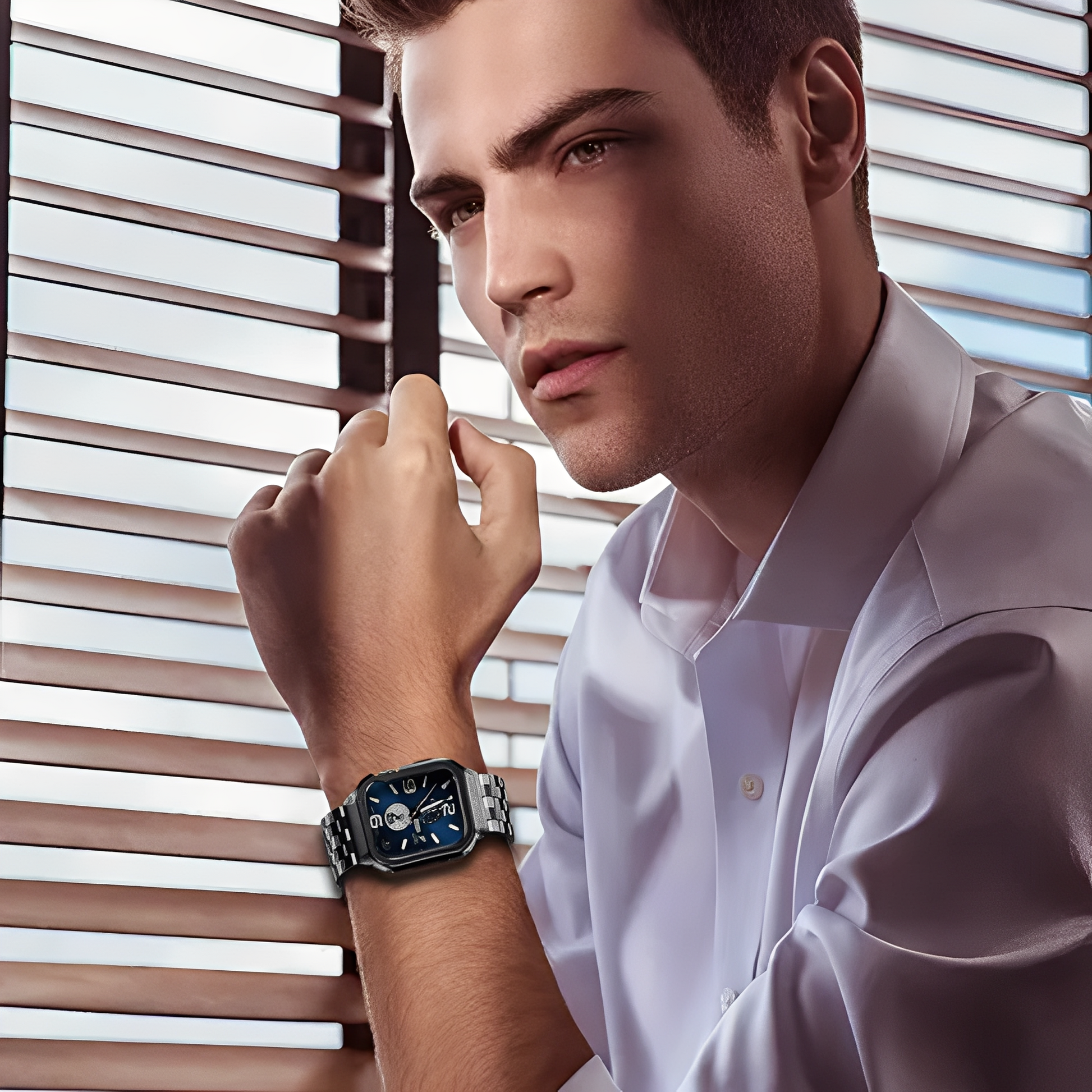 Diseñada para quienes quieren que su Apple Watch se sienta como un reloj de verdad, esta correa refinada combina acero inoxidable pulido con un ajuste sencillo y un estuche protector adicional a juego.
