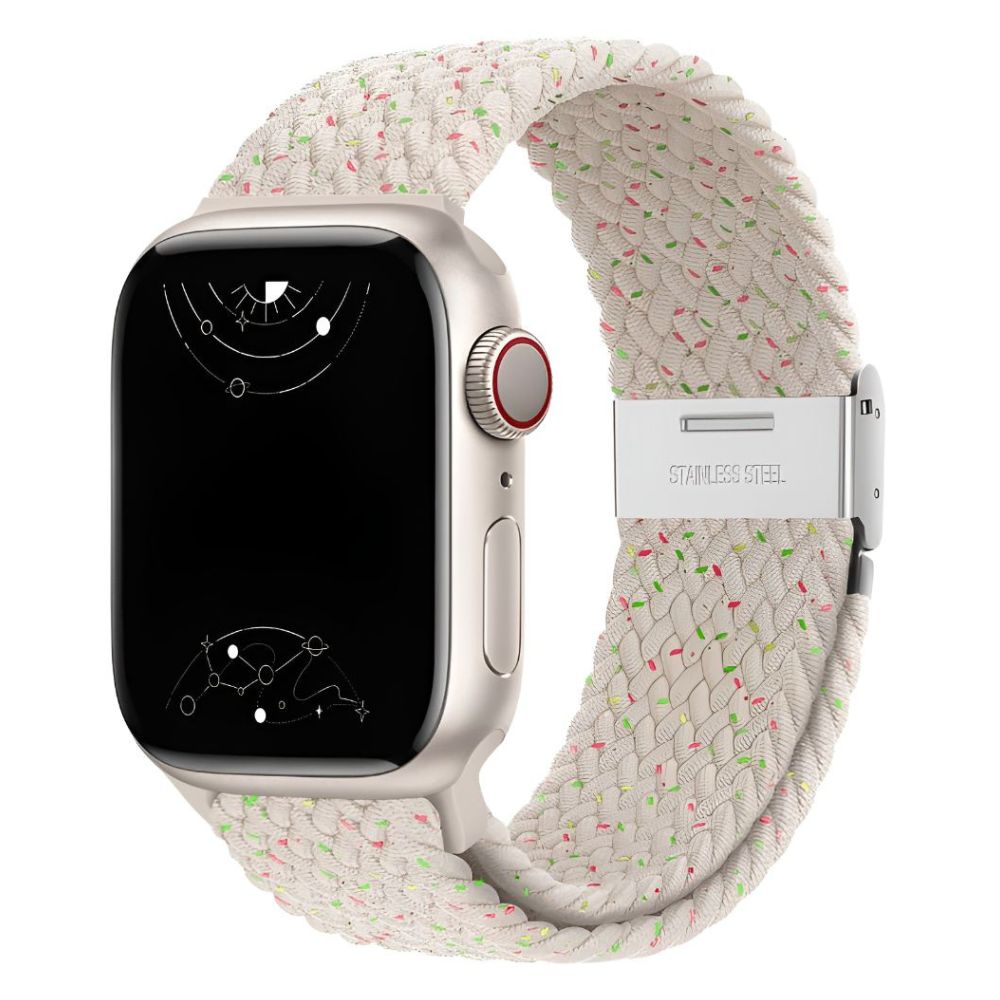 Esta correa trenzada está fabricada con nailon elástico de alta calidad. Es extensible para adaptarse cómodamente a tu muñeca, lo que te permite llevarla durante todo el día sin molestias. Elige entre nuestros vibrantes colores y eleva tu estilo hoy mismo.