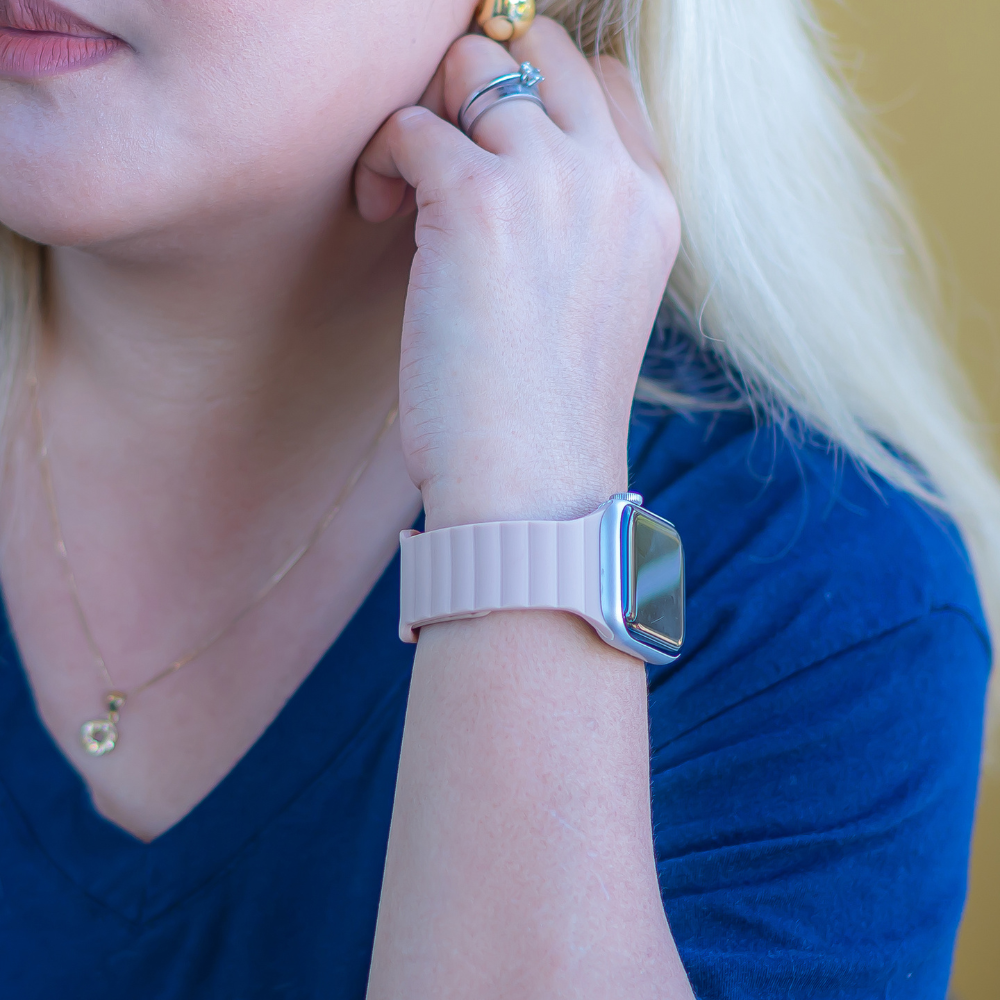 Para los Apple Watch, las medidas disponibles son 38MM, 40MM, 41MM, 42MM, 44MM, 45MM y 49MM. También puedes ingresar el número de modelo de tu reloj en un buscador para conocer el tamaño compatible.