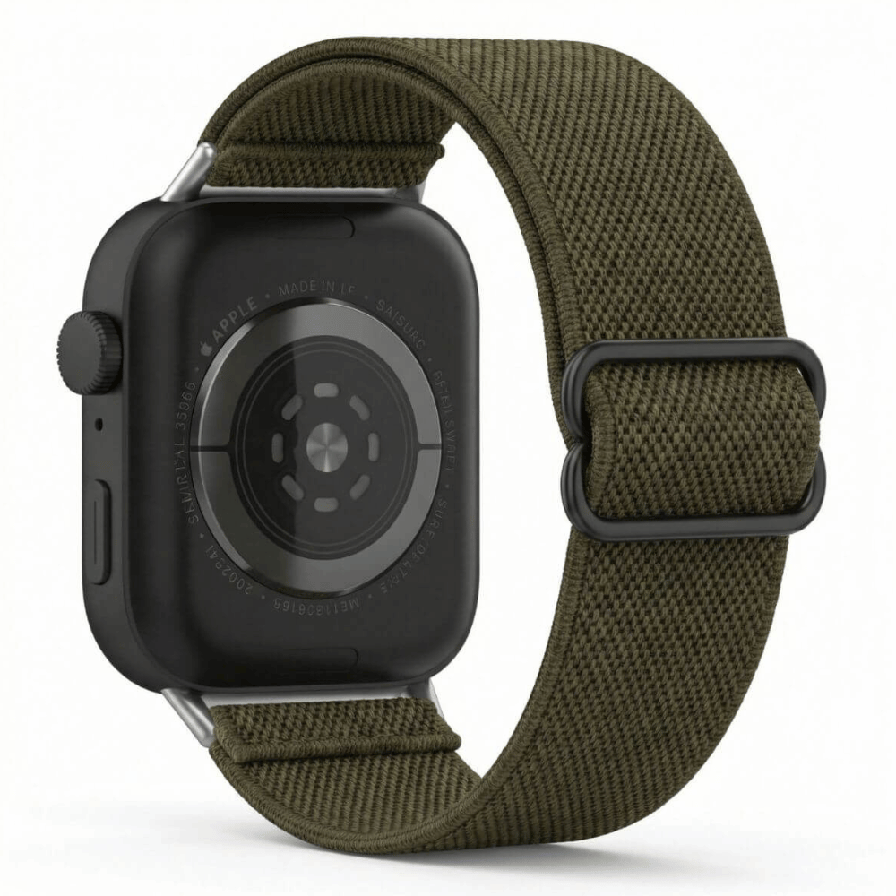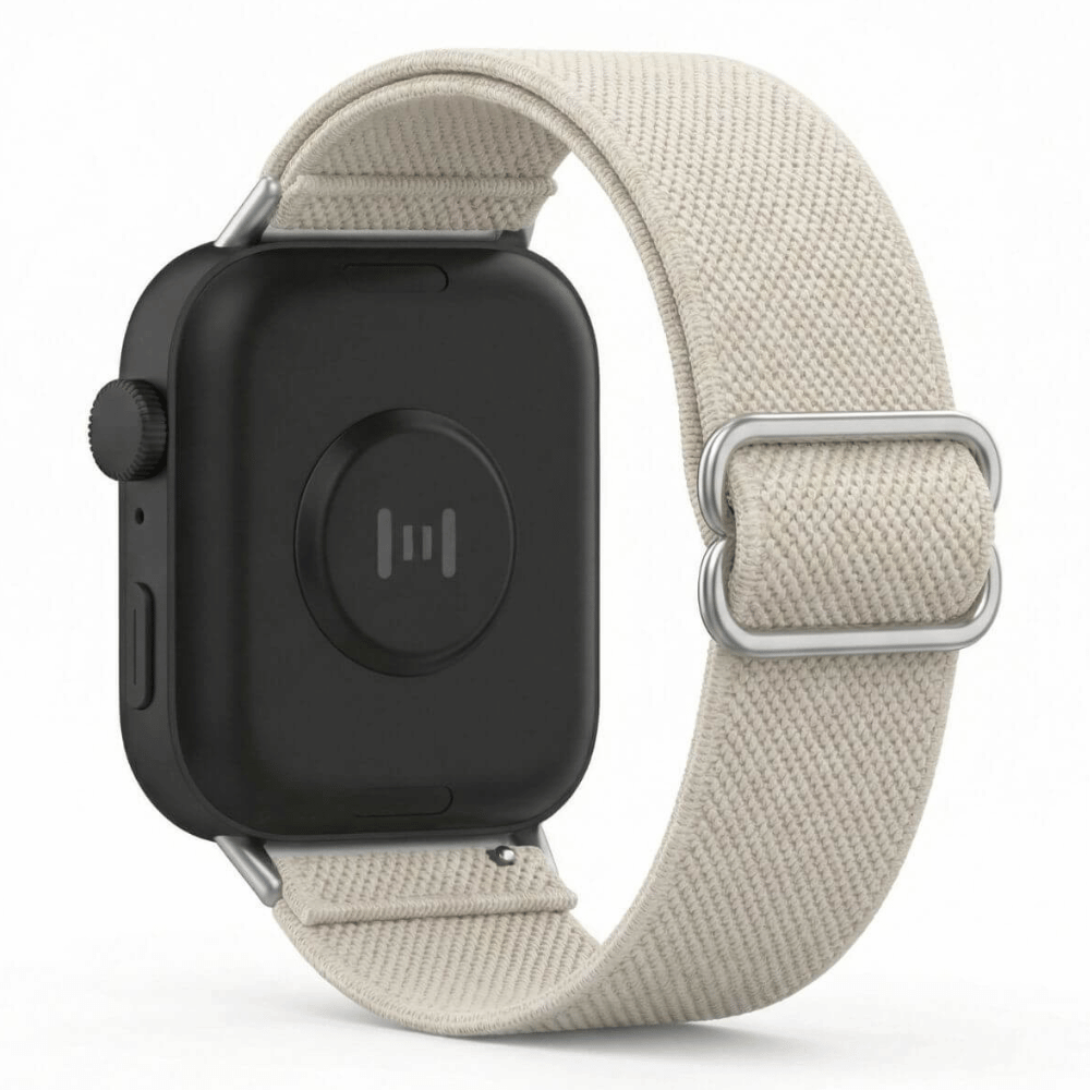Desde el momento en que deslizas esta correa en tu muñeca, notas lo diferente que se siente tu reloj. Sin pellizcos incómodos al final de un día largo, sin lidiar con agujeros que nunca quedan en el punto correcto. Solo nailon suave y elástico que se mueve contigo y se ajusta exactamente donde debe.