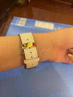 • "Las correas del reloj se ajustan perfectamente a mi muñeca, ya que tienen muchos agujeros para adaptarse a mi tamaño. Los colores son muy bonitos. La sensación de la correa es suave. La forma en que se cierra la correa es una ventaja, ya que queda muy segura en mi muñeca."