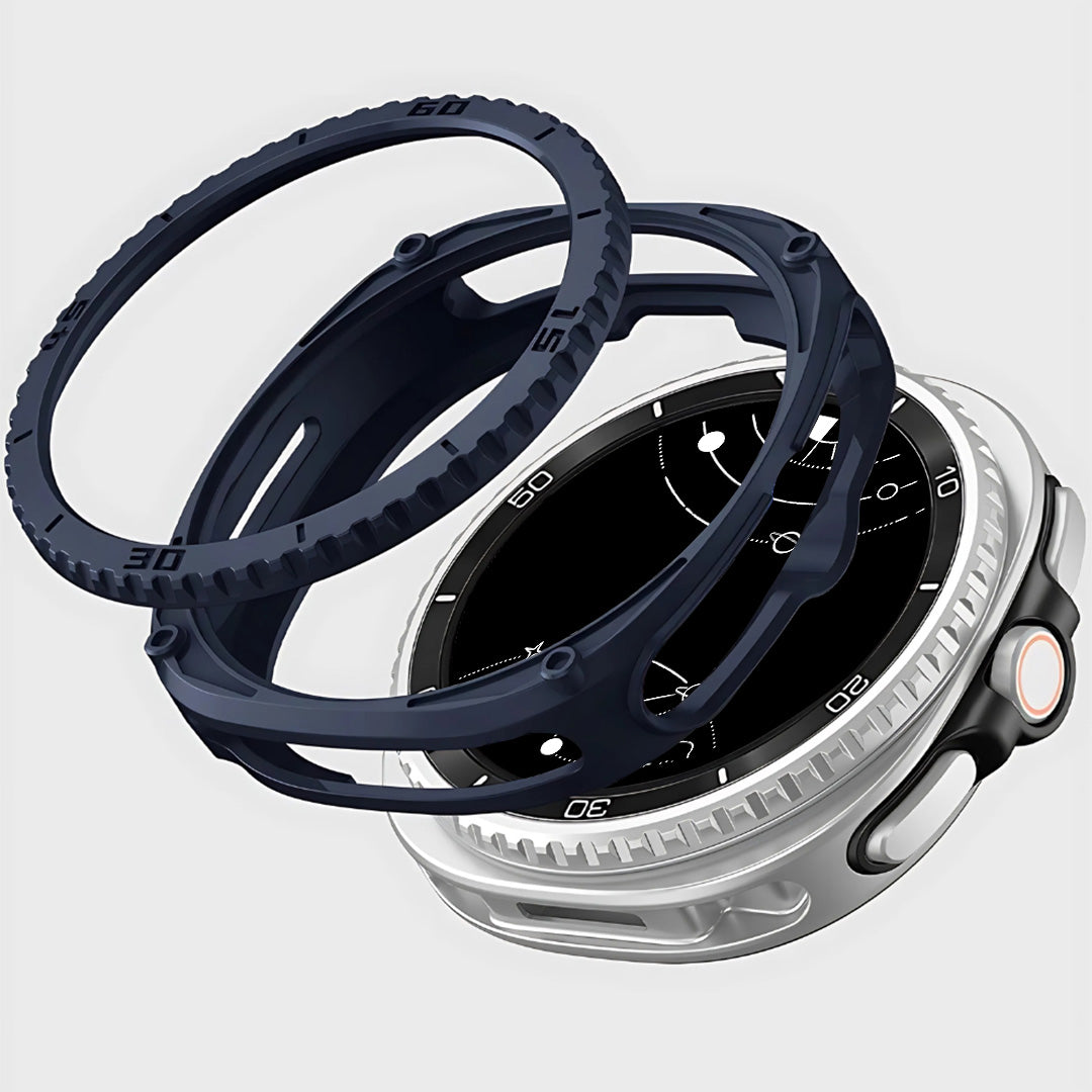 Si tu Galaxy Watch va a donde tú vas, merece una protección que esté a la altura. La Funda Bumper Obtineo con Anillo de Escala ofrece cobertura de marco completo con un estilo audaz, convirtiendo tu reloj en un esencial resistente con inspiración analógica.