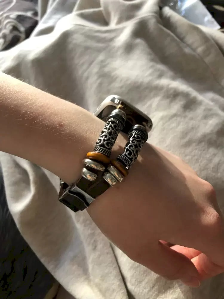 Las metálicas se limpian con un trapo suave. Y no te preocupes — te enviaremos una guía completa de cuidado, pero te adelantamos que nuestras correas son muy fáciles de mantener.