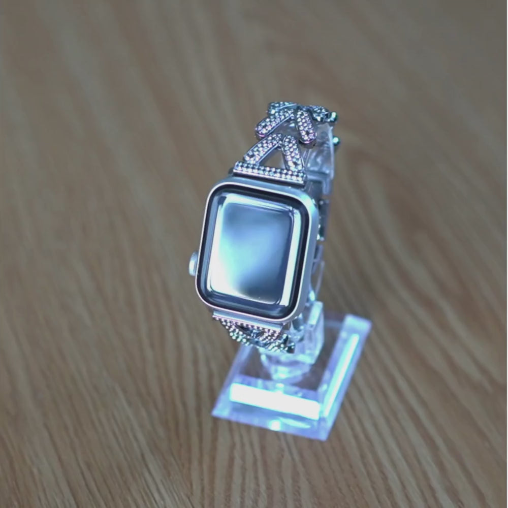 Llama la atención con la Banda de Acero de Lujo con Diamantes Polleo, un accesorio lujoso diseñado para realzar tu Apple Watch con elegancia y brillo. Con piedras de strass premium colocadas a mano en un elegante diseño de acero en espiga, esta banda captura la luz hermosamente para añadir un toque deslumbrante a tu muñeca.