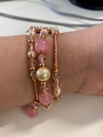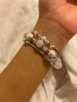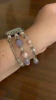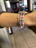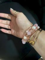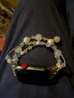 La correa de lujo Shelbe con joyas está elaborada con suave ágata de cristal, piedras naturales de alta calidad obtenidas de forma ética. La correa está reforzada con acero inoxidable hipoalergénico y un resistente hilo elástico.