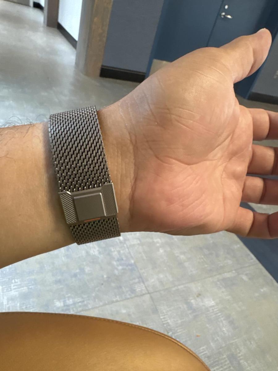 • "Las correas del reloj se ajustan perfectamente a mi muñeca, ya que tienen muchos agujeros para adaptarse a mi tamaño. Los colores son muy bonitos. La sensación de la correa es suave. La forma en que se cierra la correa es una ventaja, ya que queda muy segura en mi muñeca."