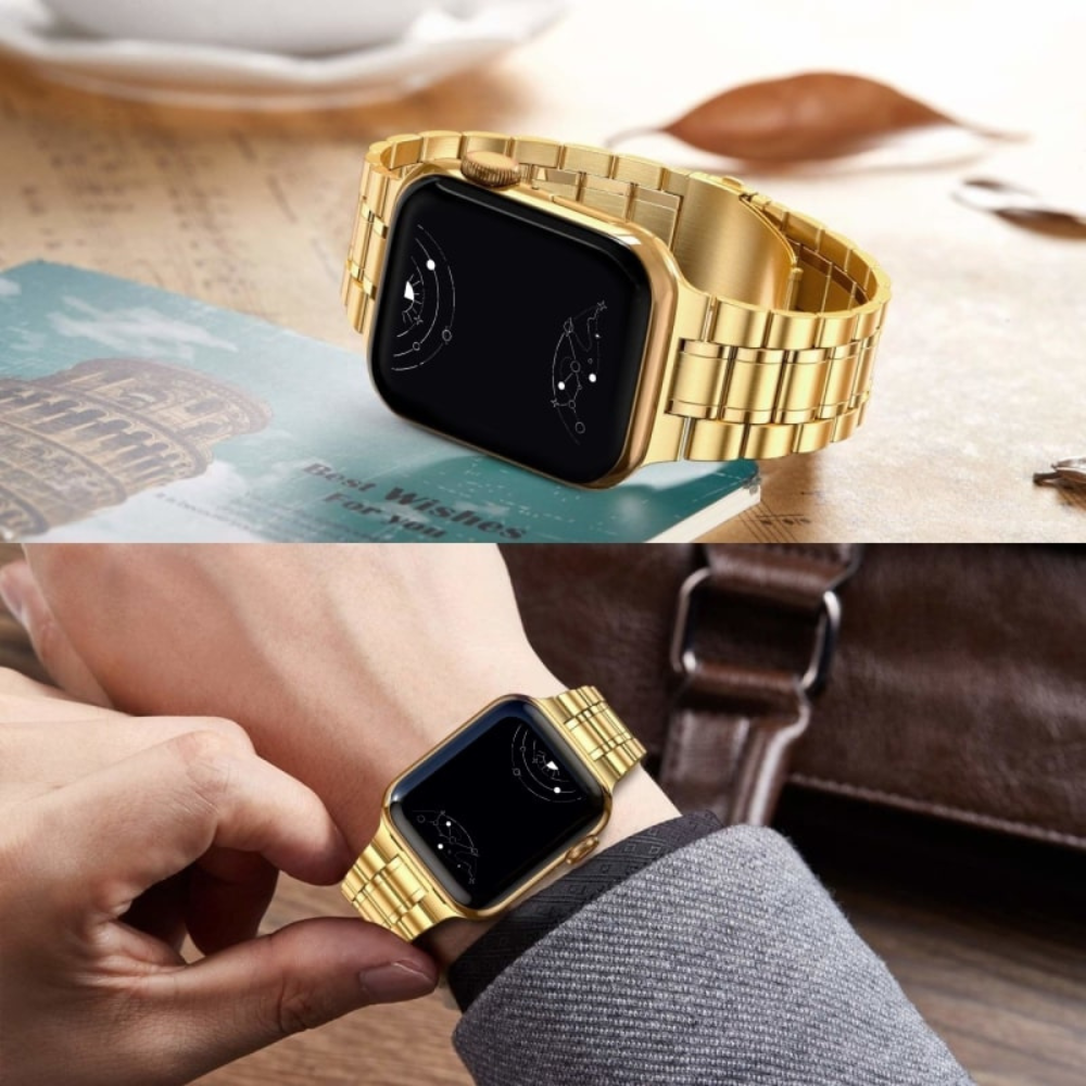 Las metálicas se limpian con un trapo suave. Y no te preocupes — te enviaremos una guía completa de cuidado, pero te adelantamos que nuestras correas son muy fáciles de mantener.